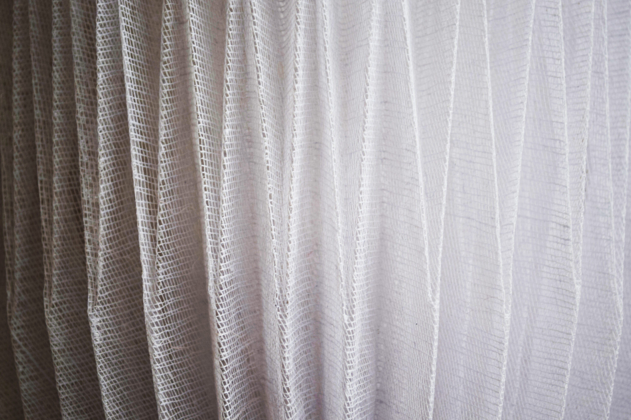 Le Parterre de lys est un panneau décoratif en tarlatane plissée, agrémenté de fleurs réalisées dans cette même matière, teinte et plissée. Le motif, répété 360 fois sur ce panneau de deux mètres de long, est inspiré du Double Spearhead de l’artiste papier Michal Kosmulsky, qui m’a autorisé à adapter sa technique de pliage du papier au plissage textile. Cette collaboration a permis de créer des plissages inédits, enrichissant ma collection grâce aux échanges avec d’autres artistes spécialisés dans le pliage, tels que Miguel A. Gañan et Christiane Bettens. Ces plissages en deux dimensions rappellent les motifs de l’art islamique que l’on retrouve dans les mosaïques et les moucharabiehs.